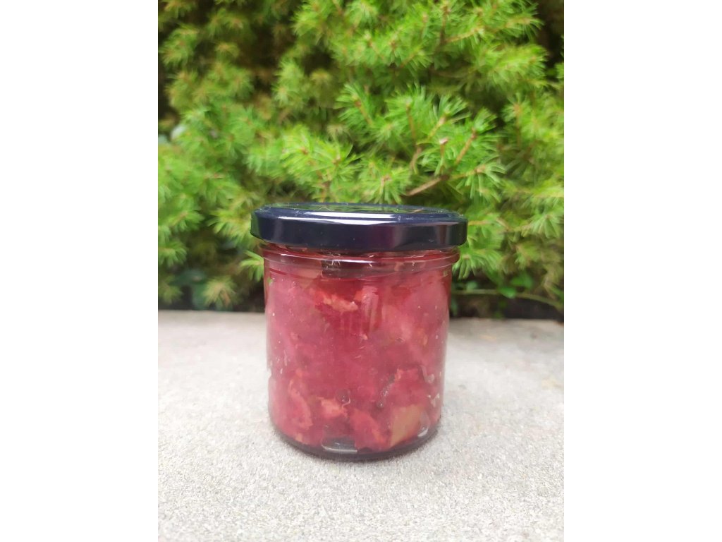 Složení: jablka, višeň (35%), cukr, citron, hřebíček, skořice