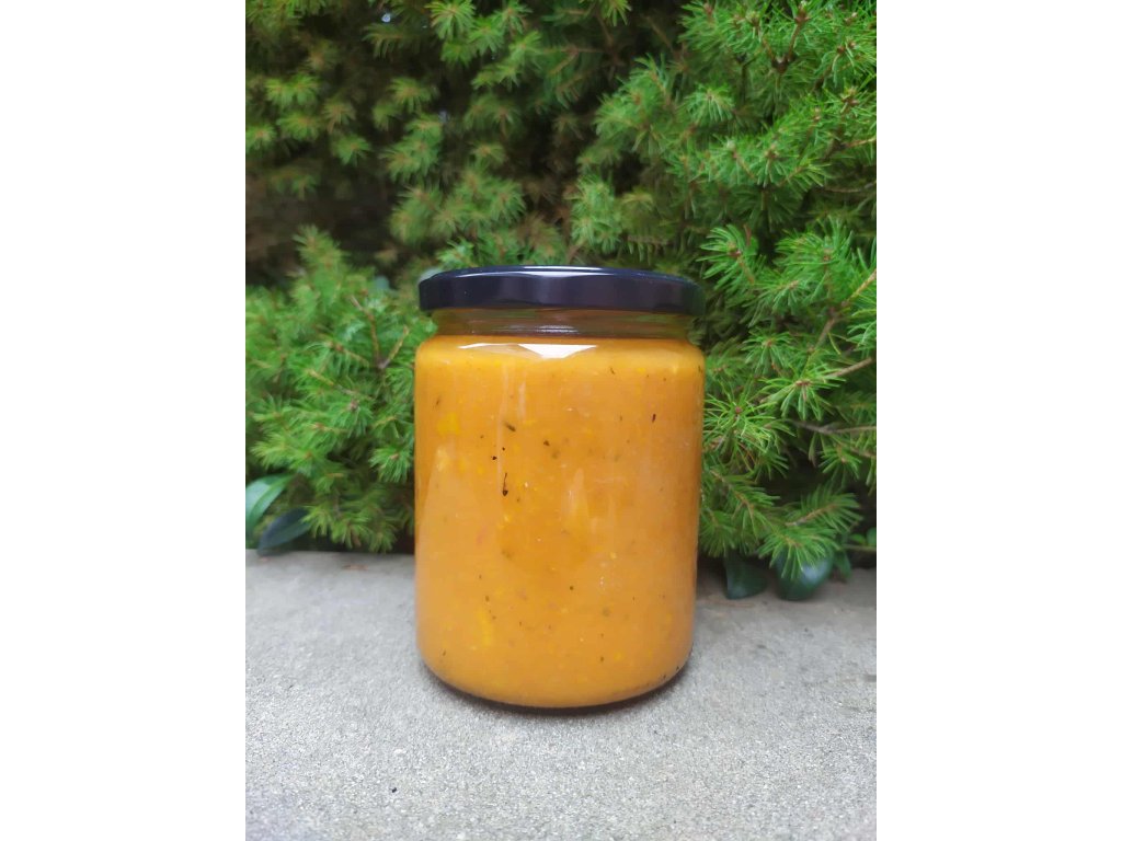 Složení: cuketa (50 %), rajčatové pyré, cibule, rajčatový protlak, olivový olej, česnek, sůl, cukr, černý pepř, směs koření (0,2 %)