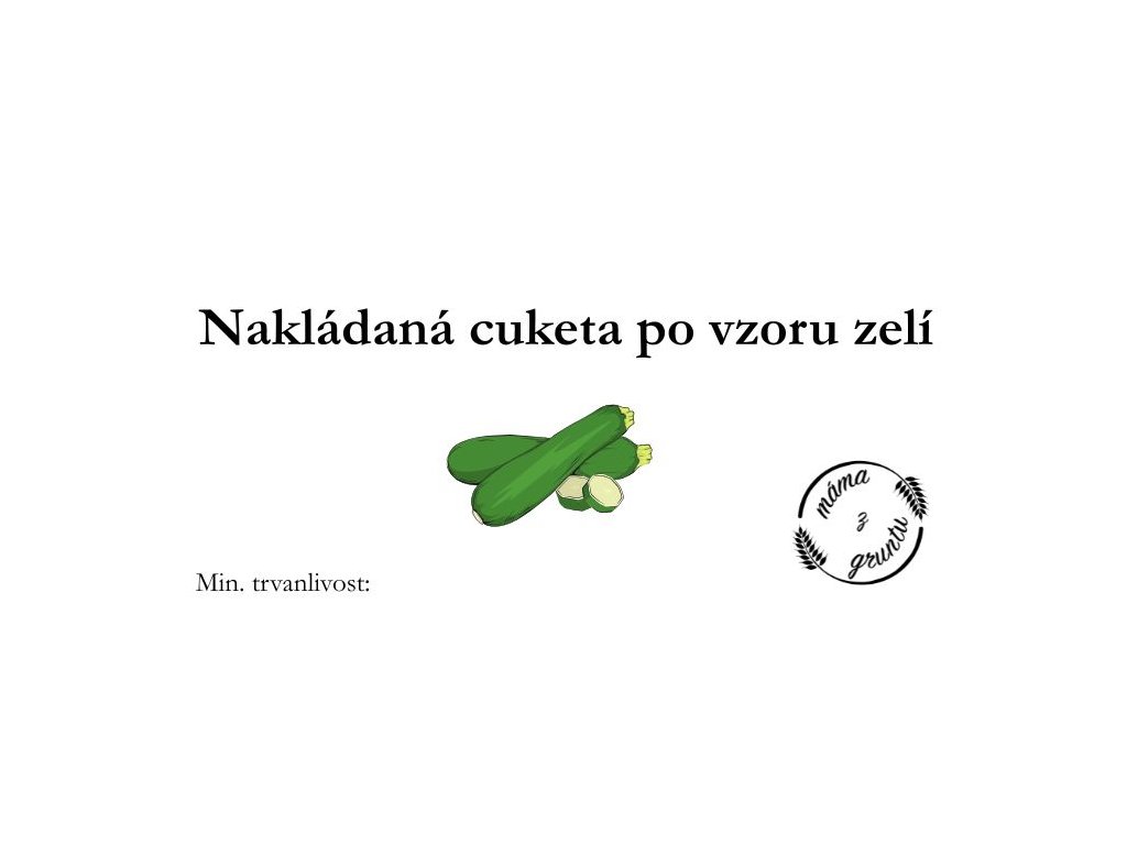 Složení: cuketa, cibule, ocet kvasný lihový , cukr, jedlá sůl,  řepkový olej, kmín