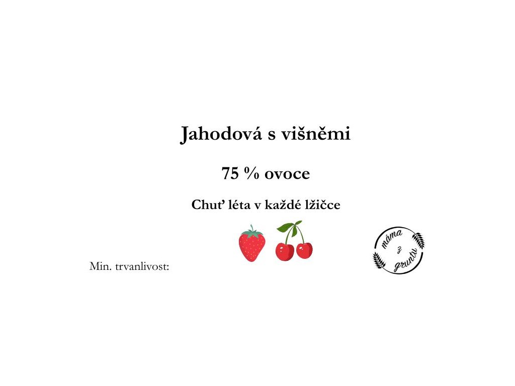 Složení: jahody (50 %), višně (25 %), cukr, citrusový pektin (želírovací látka)