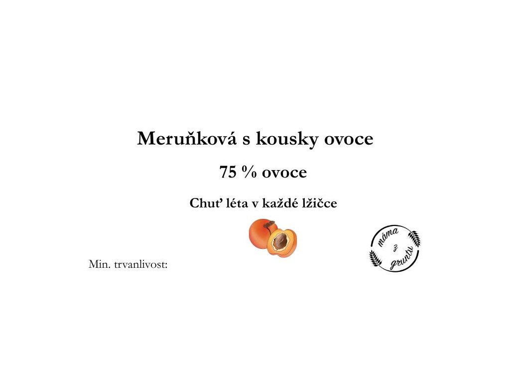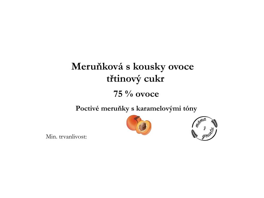 Meruňková s třtinovým cukrem: 75 % meruňky, 24 % třtinový cukr, citrusový pektin (želírovací látka)