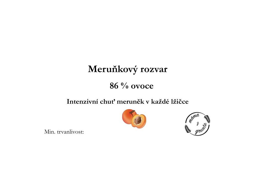 Meruňkový rozvar: 86 % meruňky, cukr, citrusový pektin (želírovací látka)