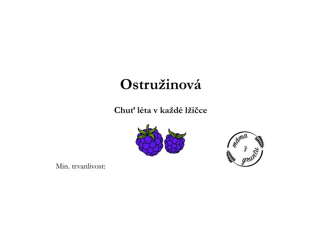 Složení: 75 % ostružiny, cukr, citrusový pektin (želírovací látka)